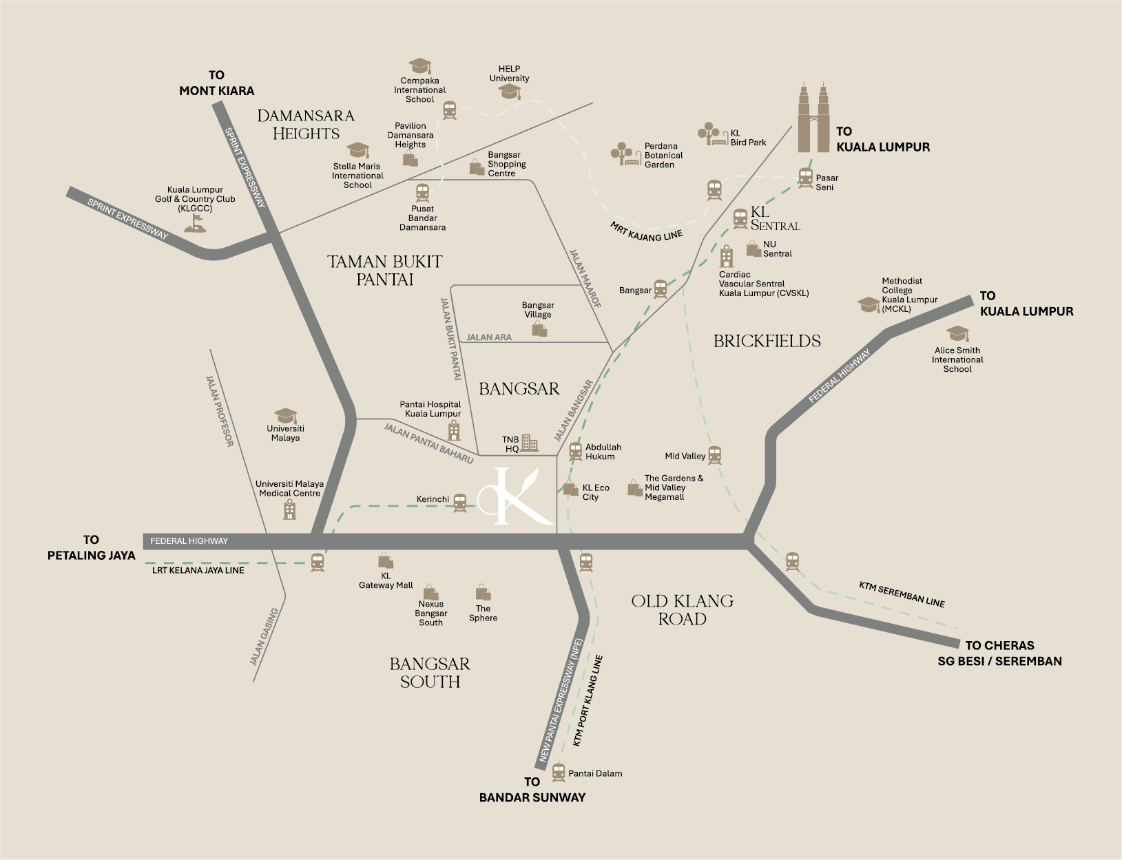 Just 400m to Abdullah Hukum LRT, two stops to KL Sentral, with direct access to major expressways — ensuring smooth citywide travel for work and leisure.